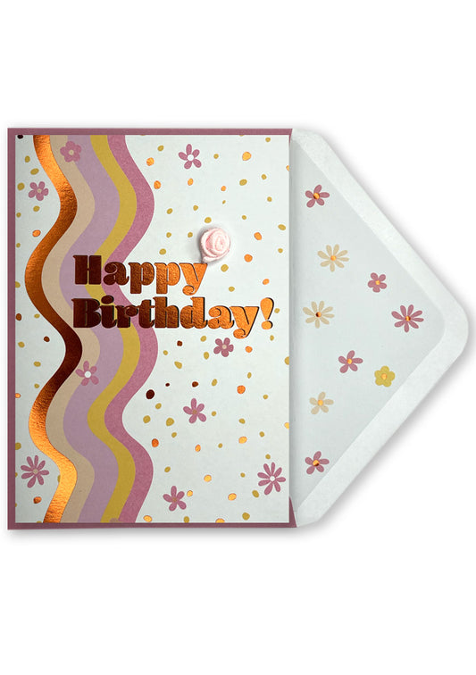 Birthday Card | Wavy Lines with Flowers
