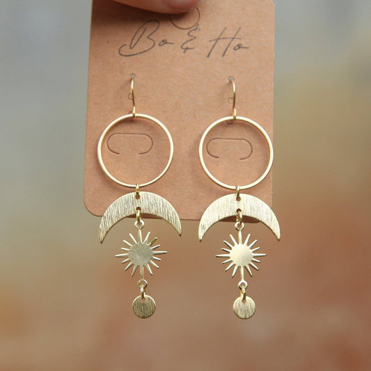 Golden Celestial Statement Sun and Moon Earrings