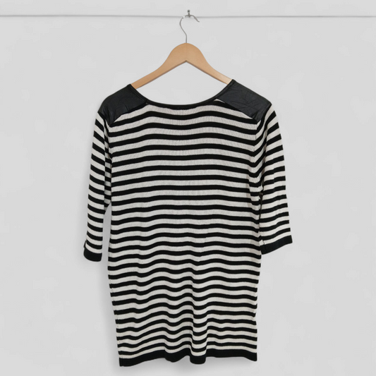 (S) Supre | Striped Faux Leather Shoulder Blouse