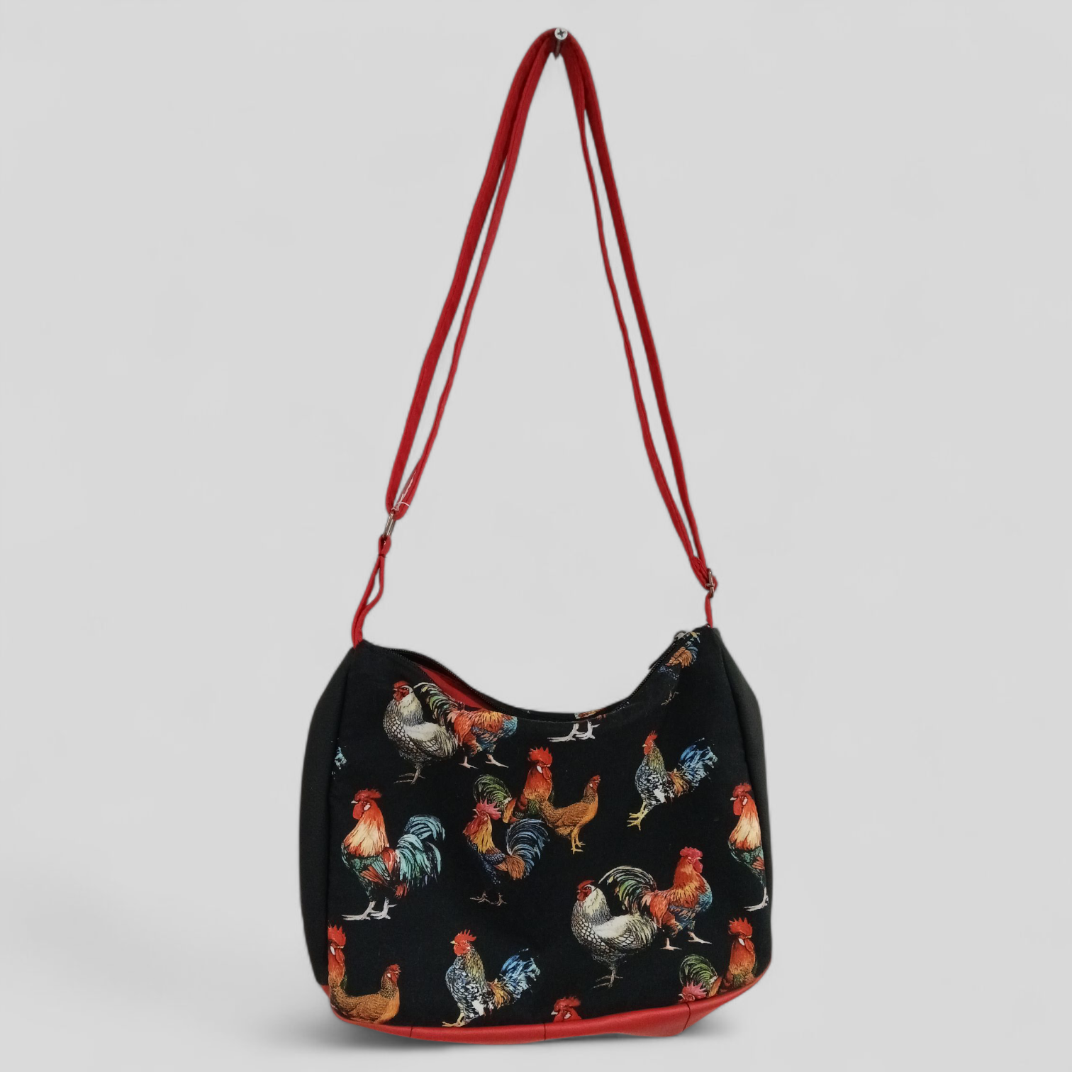 This expertly crafted bag from Tracy's Bag Creations features a striking rooster print, combining artistry with functionality. Handmade with attention to detail, it measures 30x20x10cm and includes an extendable shoulder strap for versatile wear. Perfect for those seeking a unique, high-quality accessory that stands out.