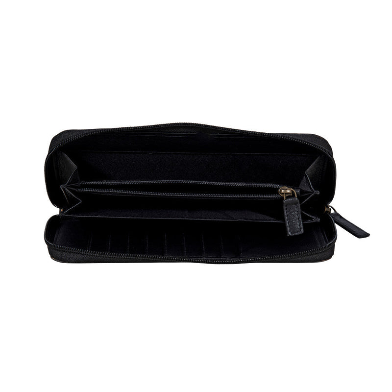This beautiful wallet offers amazing design with Southwest flourish! The hand-tooled leather features the hallmark of our “Spirit of the Herd” design – a lone steer skull set against a prairie sunflower. The back features a special geometric waffle pattern. The interior holds all your essentials in plenty of slots and compartments. An amazing accessory!.